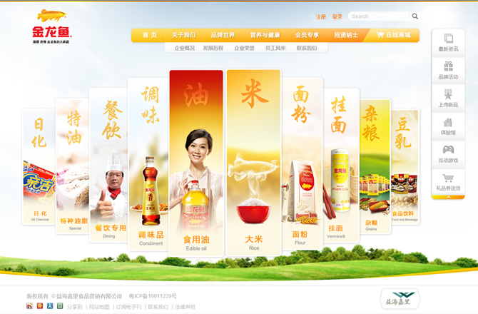 產(chǎn)品涵蓋了小包裝食用油、大米、面粉、掛面、調(diào)味品、雜糧、豆奶、餐飲用油、特種油脂、油脂化工等10大領(lǐng)域,旗下16個品牌在金龍魚的帶領(lǐng)下,都已成為每一個專業(yè)領(lǐng)域內(nèi)的知名品牌。